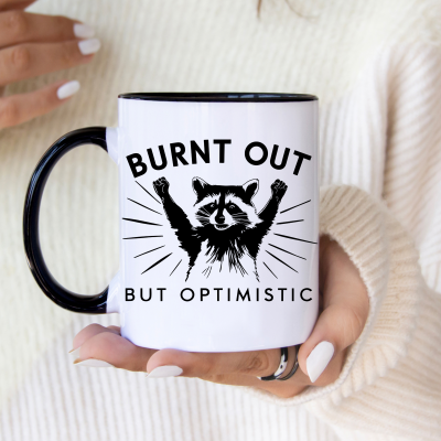 Caneca "Burnt Out but Optimistic" - Para Quem Enfrenta o Dia com Humor